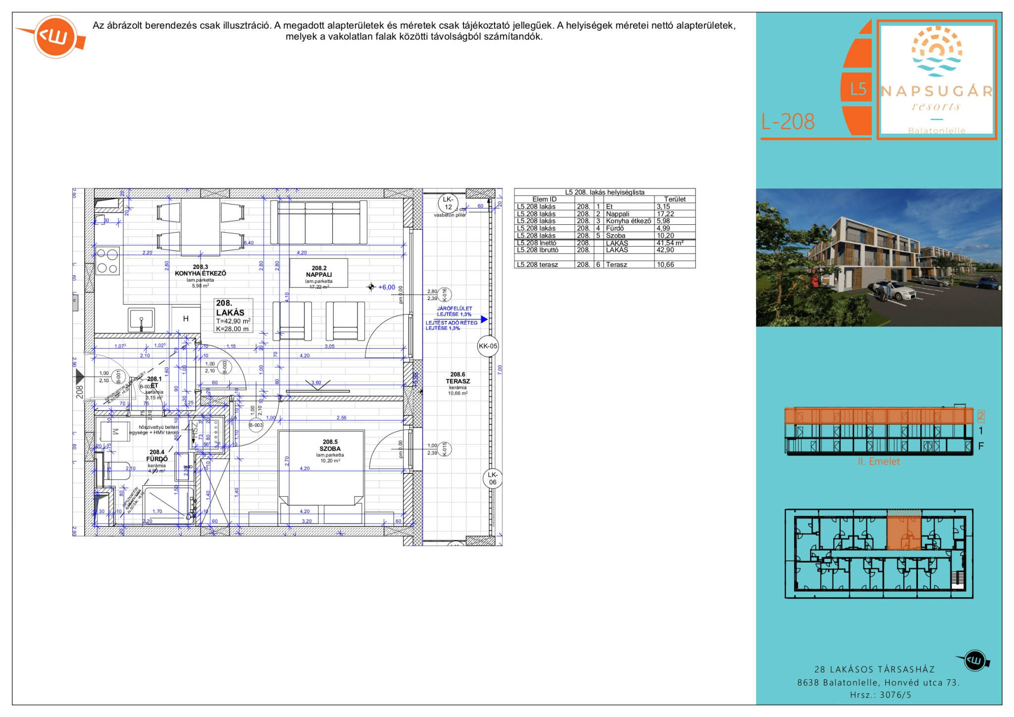 A 208 számú lakás főbb paraméterei